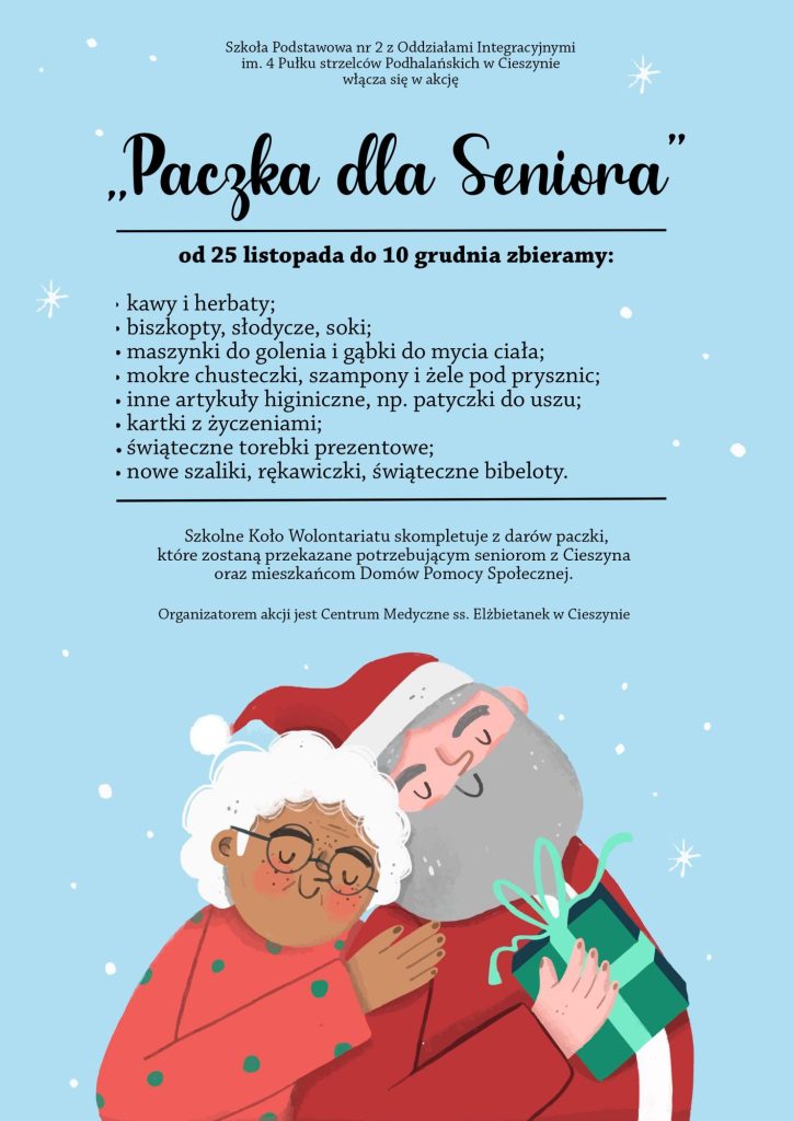 Nasza szkoła włącza się w akcję „Paczka dla Seniora”. Razem możemy pomóc potrzebującym mieszkańcom naszego miasta – zachęcamy do wsparcia!