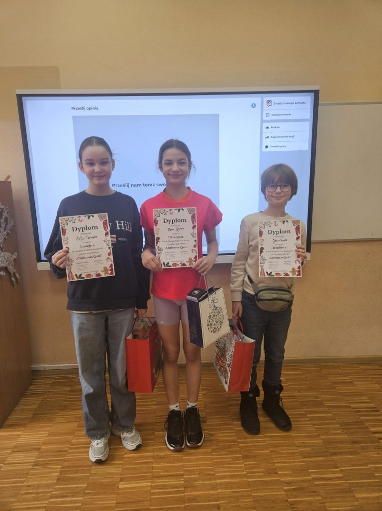 15 stycznia 2026, w SP 1 w Cieszynie odbył się międzyszkolny konkurs z języka angielskiego – Christmas Quiz. Uczniowie mierzyli się z testami sprawdzającymi znajomość słownictwa oraz tradycji Bożego Narodzenia w