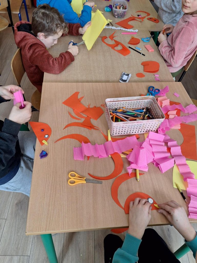 Po zakończeniu zajęć obie grupy wróciły na wspólny obiad. Po posiłku odbyły się zajęcia plastyczne. Podczas warsztatów dzieci wykonały kolorowe ptaszki, wykazując się dużą kreatywnością i zaangażowaniem.