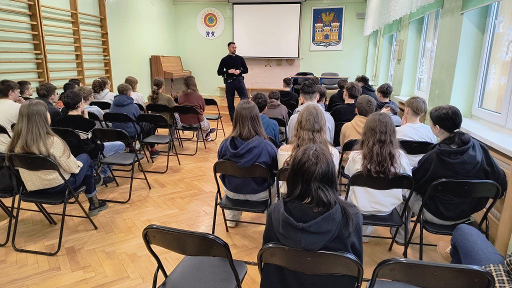 W dniu 28 stycznia odbyła się prelekcja profilaktyczna pt. „Odpowiedzialność karna nieletnich”. Uczniowie klas 8a, 8b, 8c i 7b spotkali się z policjantem, panem Sebastianem Marko. Uczniowie przypomnieli sobie do czego zobowiązuje ich prawo i jakie konsekwencje ponosi osoba nieprzestrzegająca zasad.
