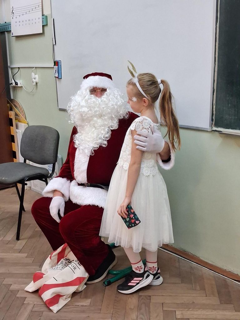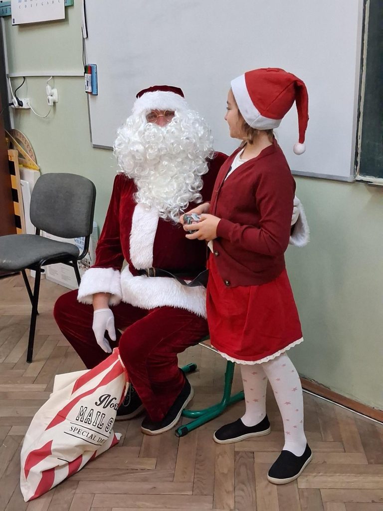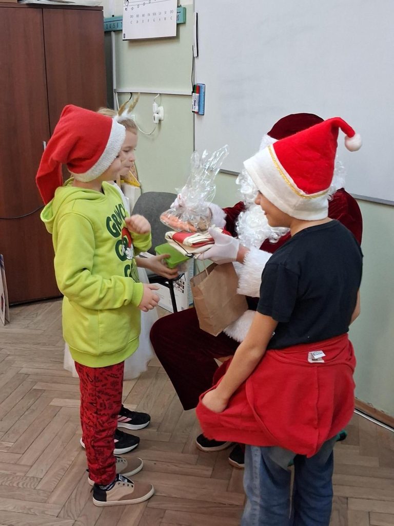 Rozmawiał z uczniami i rozdał dzieciom piękne prezenty. Uczniowie zaśpiewali kolędę i w klasie powstał świąteczny nastrój.