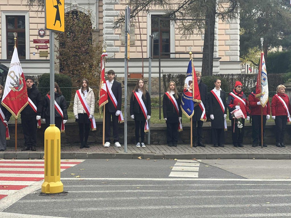 Poczet sztandarowy naszej szkoły reprezentował placówkę w cieszyńskich obchodach Narodowego Święta Niepodległości 11 listopada, a delegacja uczniów klasy 8b złożyła kwiaty pod Pomnikiem Legionistów.