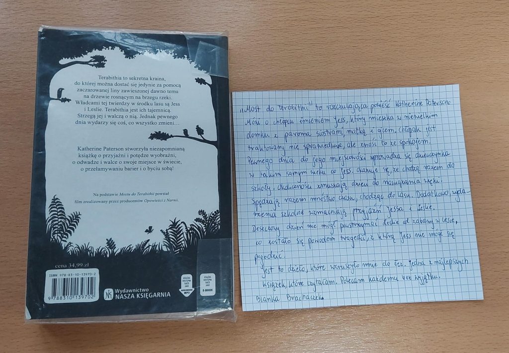 Zapraszamy do przeczytania książki autorstwa Katherine Paterson „Most do Terabithii”. Recenzję książki napisała Blanka Brachaczek z kl.7a