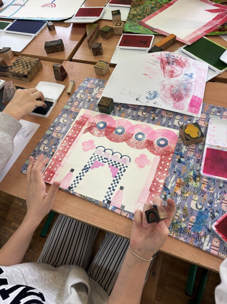Klasa 4a wzięła dzisiaj udział w warsztatach edukacyjnych „ModuloThinking” – metoda uczenia się przez działanie. Z wykorzystaniem kreatywnych stempli „Modulo” dzieci połączyły własną kreatywność z grupowym projektem. Tematem zajęć było zaprojektowanie fabryki czekolady Wonka. Powstały ciekawe i nietypowe prace, które zostały połączone razem w wizualizację fabryki. Zadanie zostało wykonane doskonale! Dzieci świetnie się bawiły z nietypowymi pomocami! Poznały możliwość wykorzystania stempli jako języka wizualnego 👏😊👏😊👏