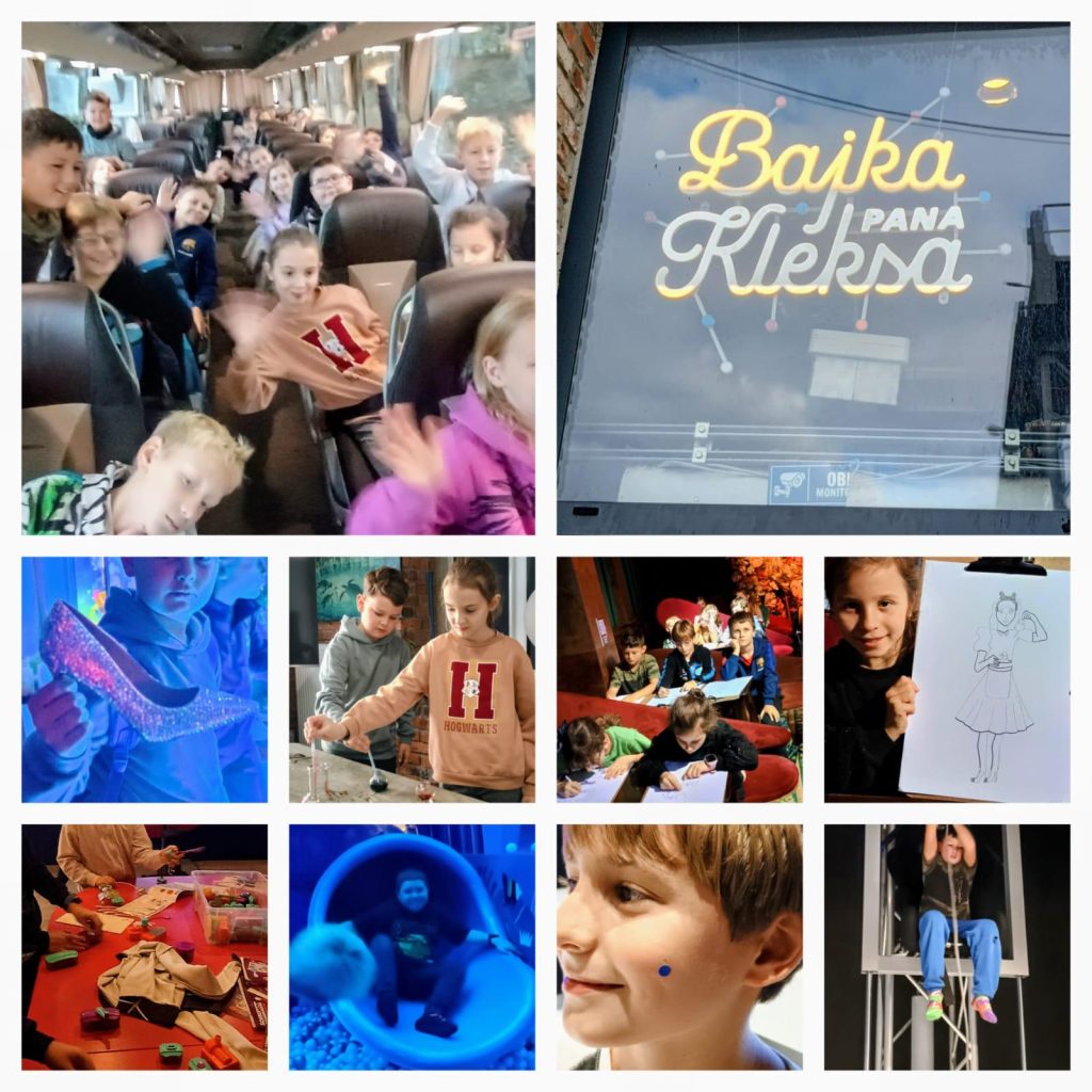 12 listopada klasa 3b i 3c wybrały się do Katowic, a dokładnie do ,,Bajki Pana Kleksa”. Podczas zajęć uczniowie rozwijali kreatywność, ciekawość świata oraz umiejętność współpracy w grupie. Dzieci uczestniczyły w interaktywnych warsztatach z eksperymentami i w zajęciach plastycznych. Poznawały bohaterów z książek Jana Brzechwy. W bajkowym escape roomie wszyscy poradzili sobie z zadaniami, wymagającymi spostrzegawczości i wyobraźni. Na koniec spędzili czas na zabawie w Podwodnym Świecie Królowej Aby, w Kosmicznej Stacji Bajki oraz w Krainie Szpaka Mateusza. Wycieczka dostarczyła wielu wrażeń, a jednocześnie sprzyjała budowaniu pozytywnych relacji w klasach i wzmacnianiu integracji uczniów.