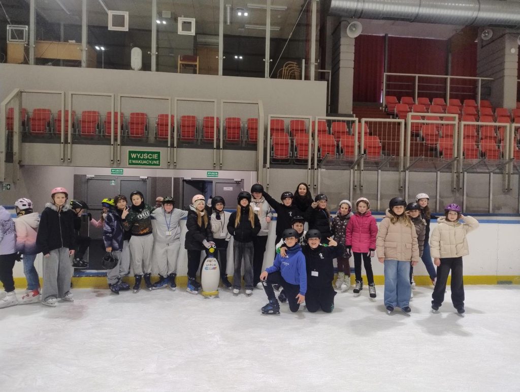 Uczniowie wybrali się na lodowisko, gdzie niektórzy mieli okazję po raz pierwszy w życiu spróbować swoich sił. Szło im świetnie 💪